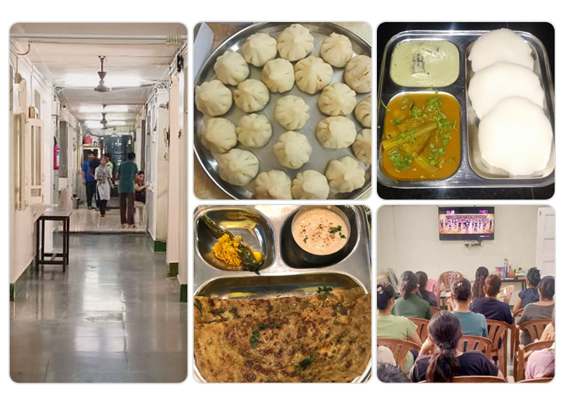 Twin sharing, Single Occupancy, Guest rooms available Breakfast, Lunch, Dinner available as per Hostel Policy.